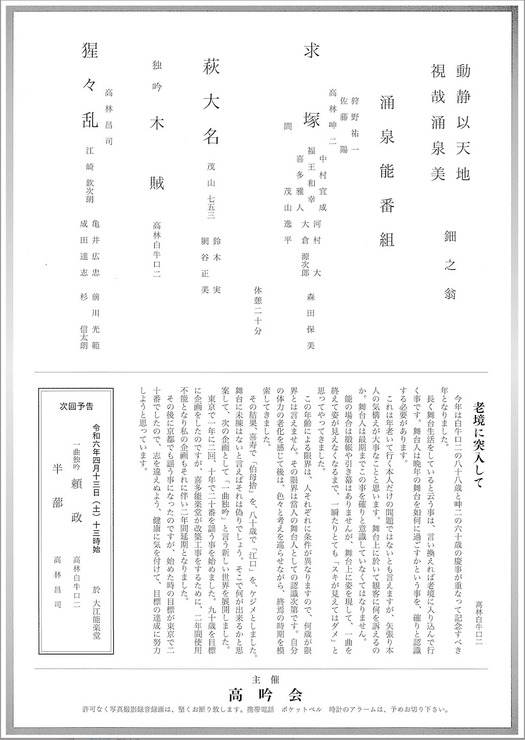 高林白牛口二 米寿・高林呻二 還暦 記念公演