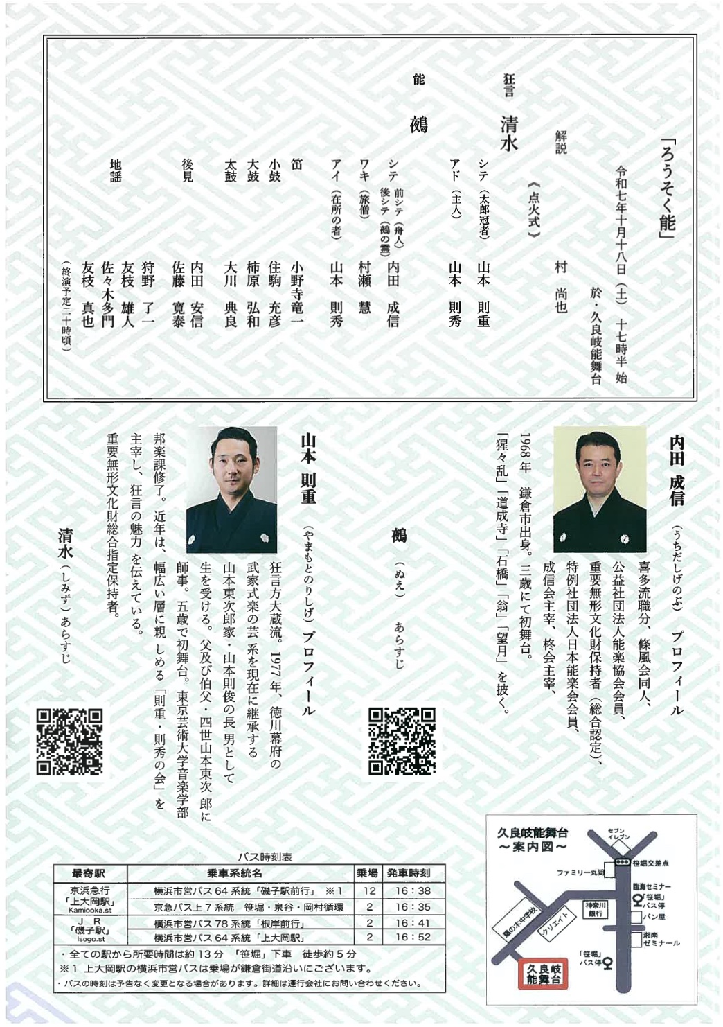 | お問い合わせ | 久良岐能舞台 ☎︎ 045-761-3854(10:00〜17:00) |