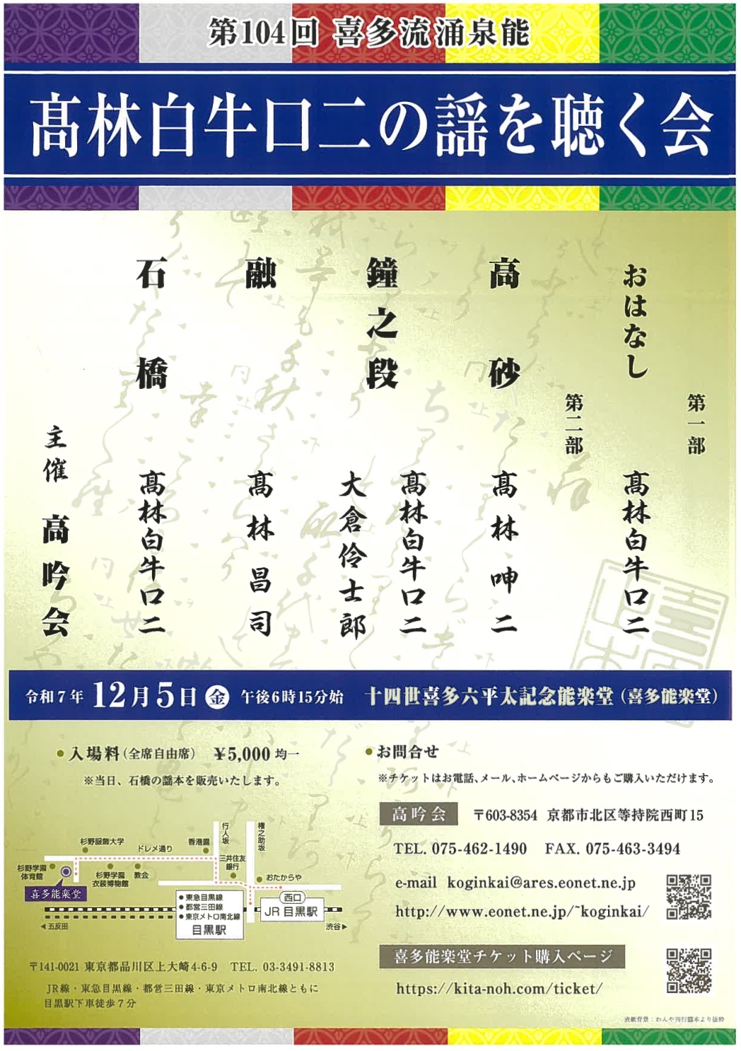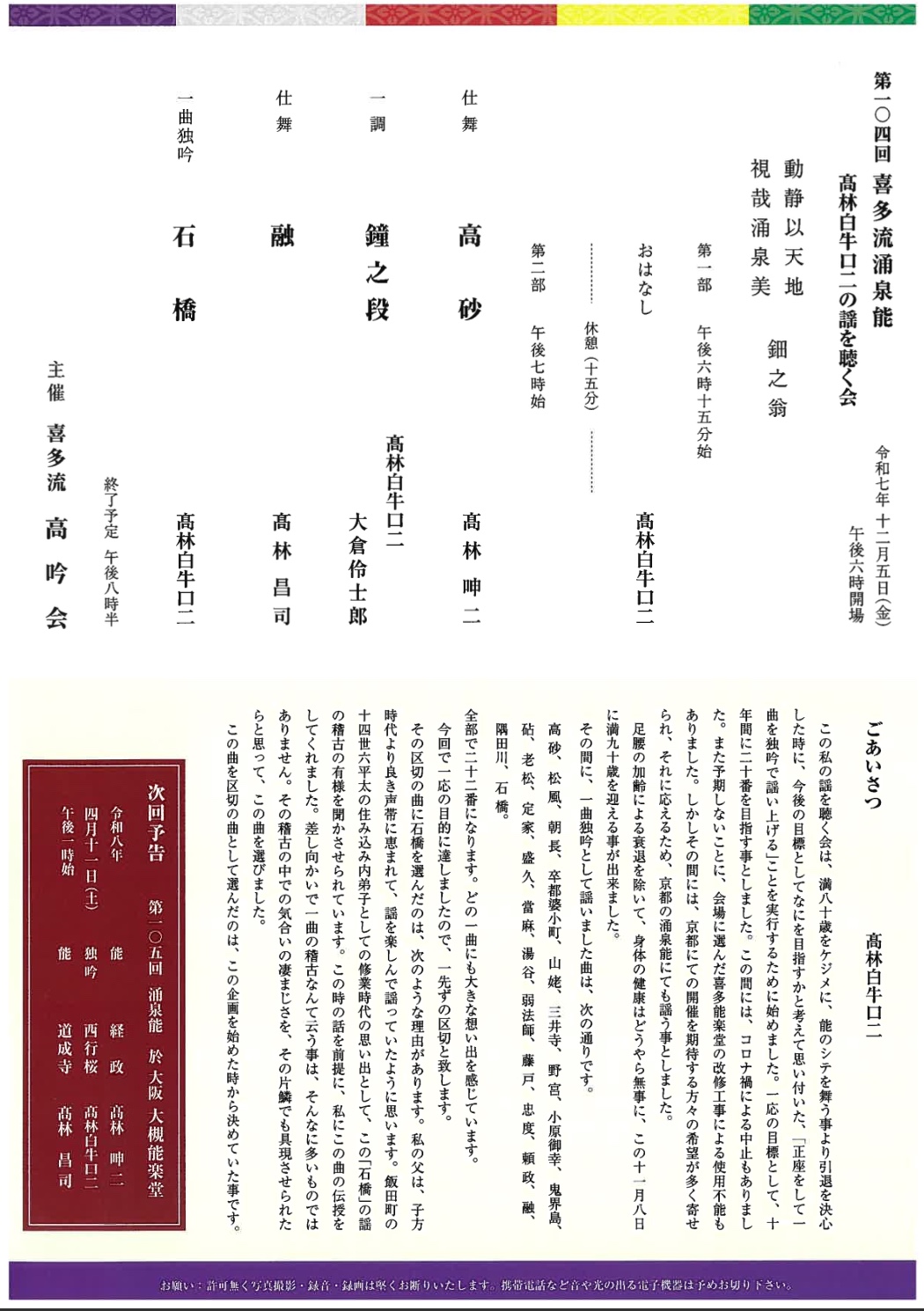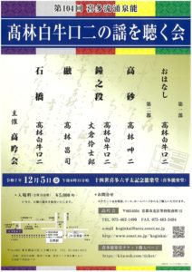 第104回 喜多流涌泉能 高林白牛口二の謡を聴く会