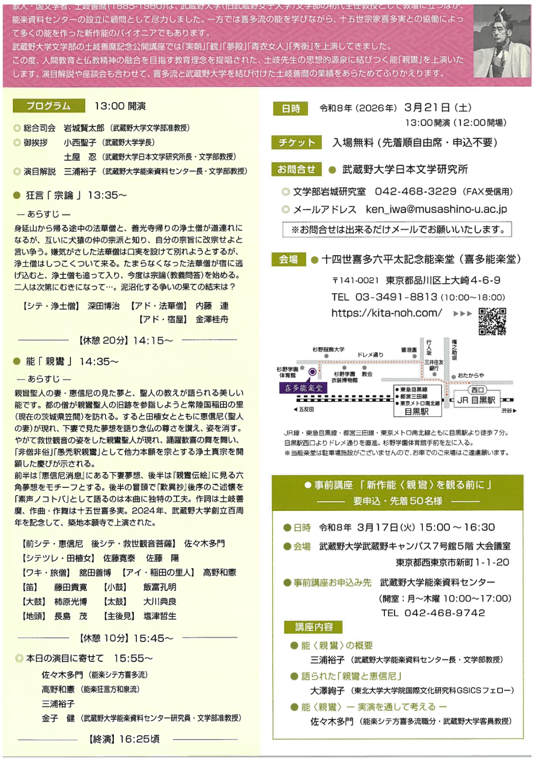 | 演目/シテ | 狂言『宗論』深田博治 能『親鸞』佐々木多門 |
