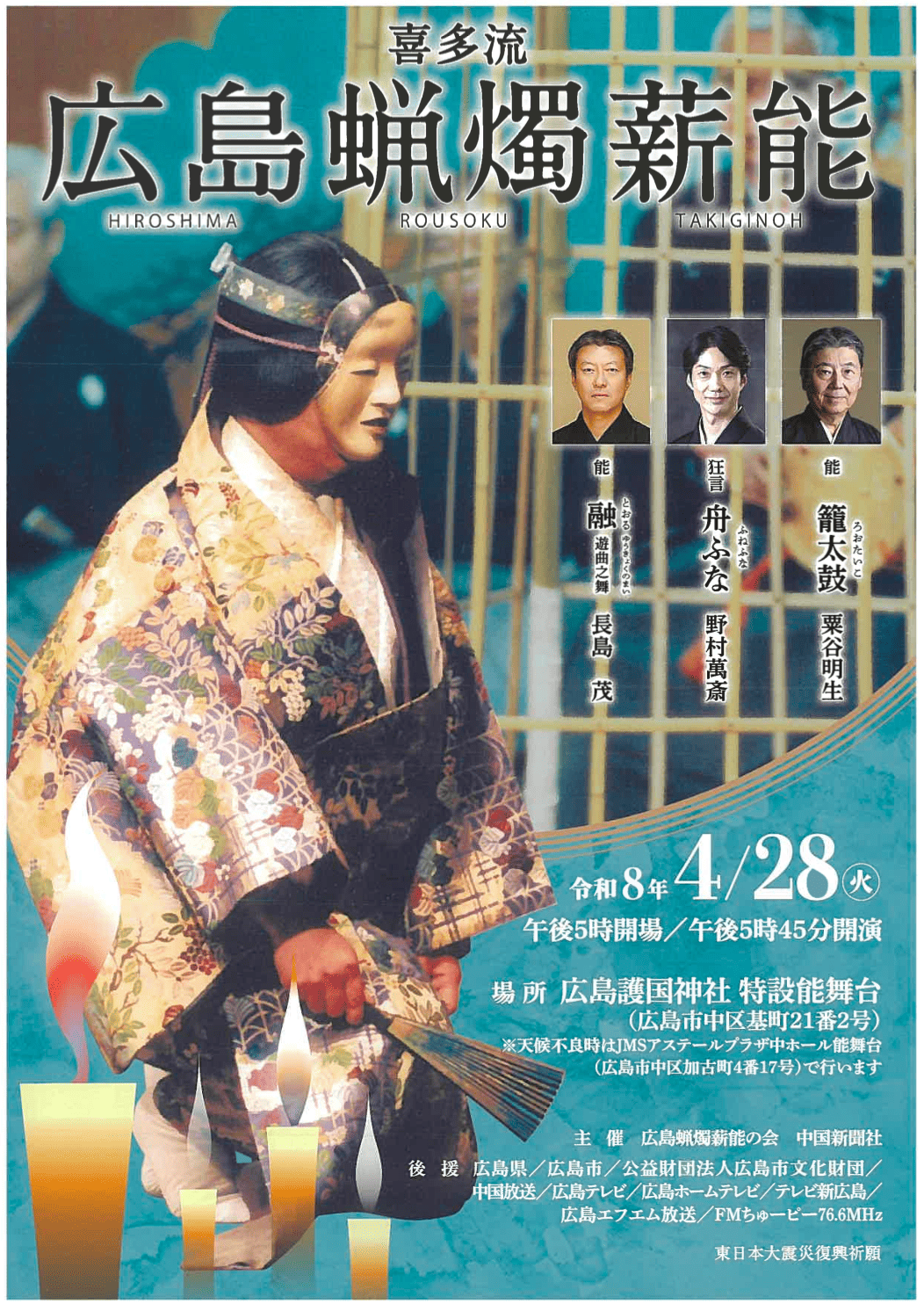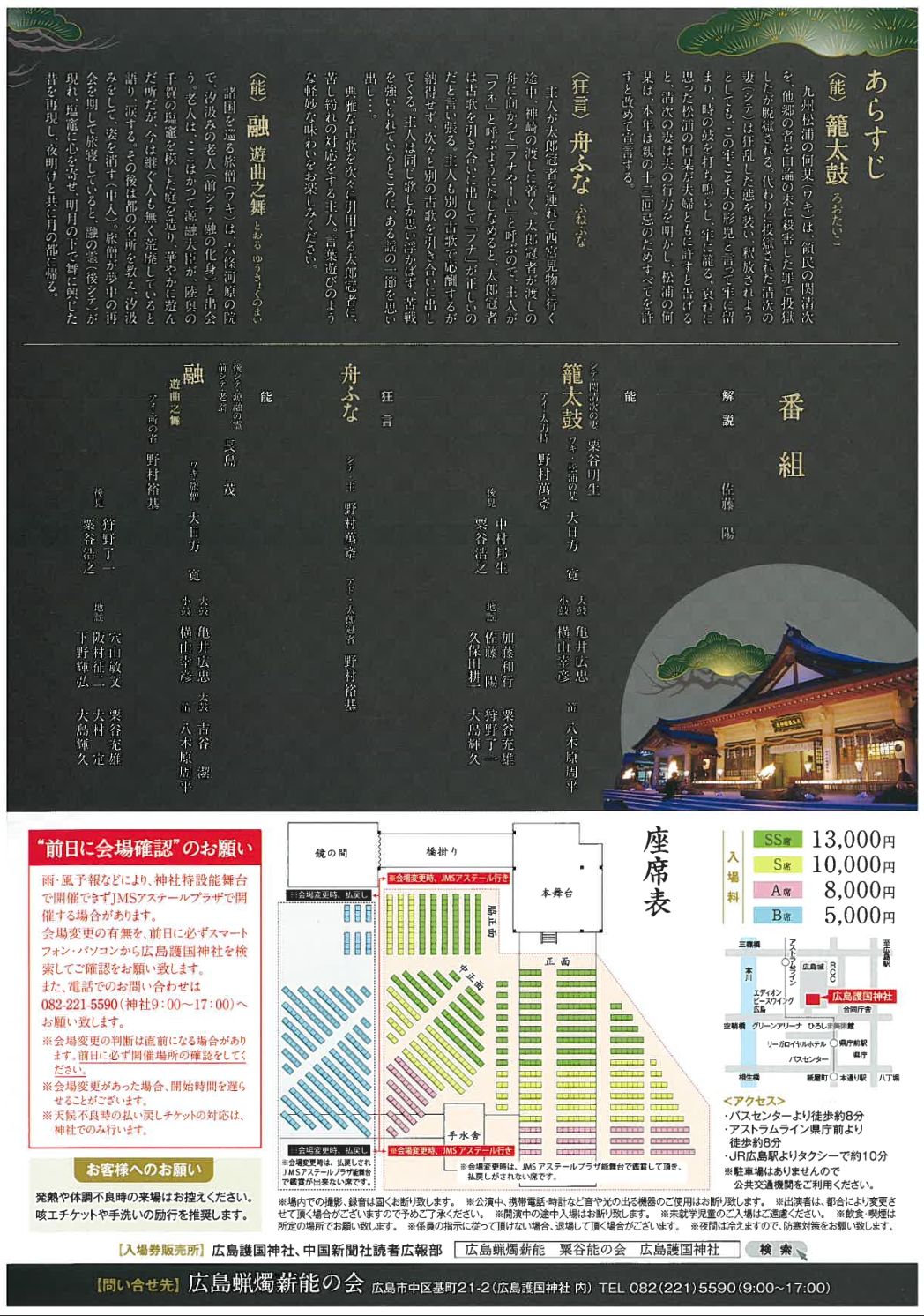 お問い合わせ 広島蝋燭薪能の会 ☎082-221-5590(9:00〜17:00)