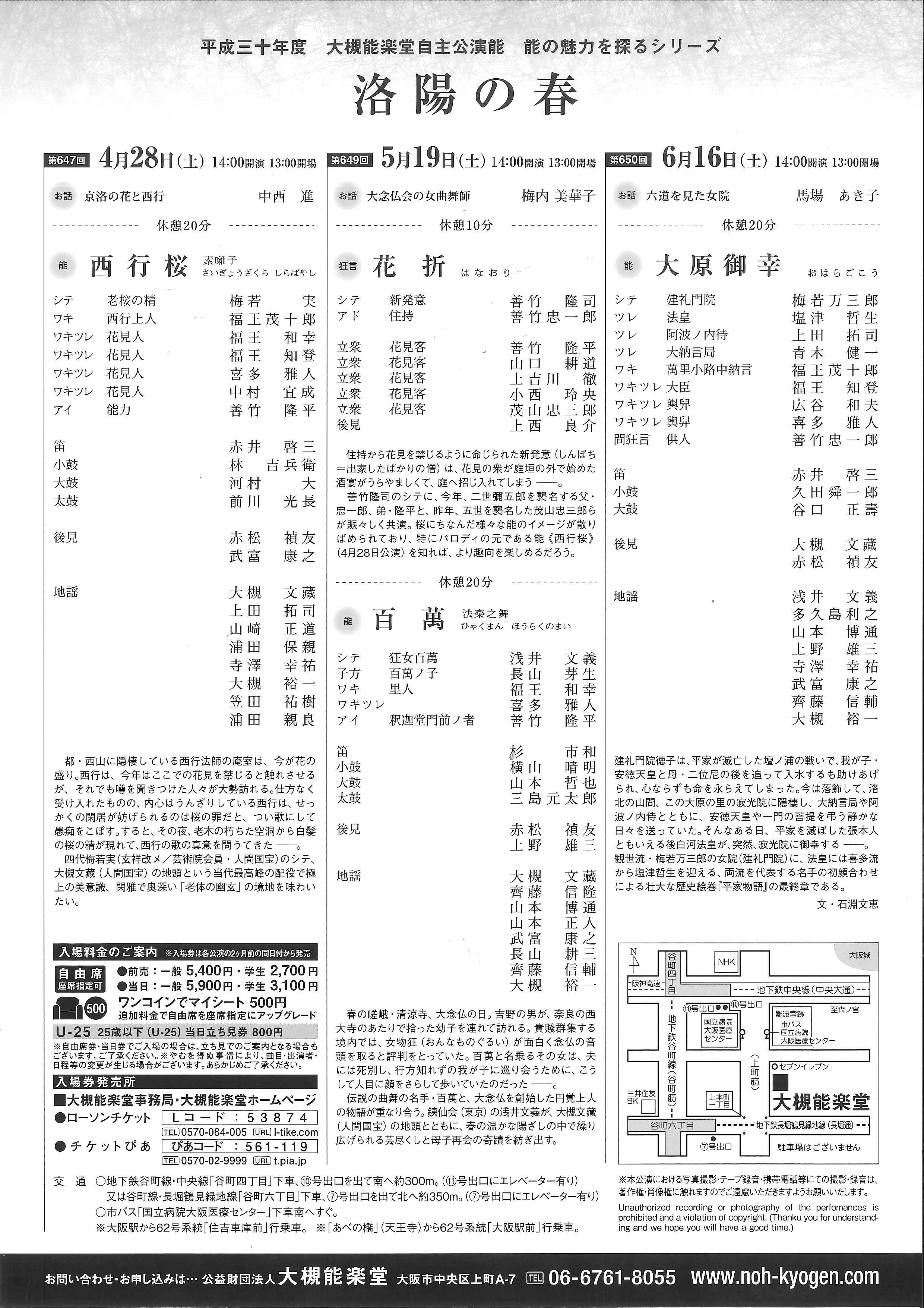 | お問い合わせ | 大槻能楽堂 ☎ 06‐6761-8055 web http://www.noh-kyogen.com |